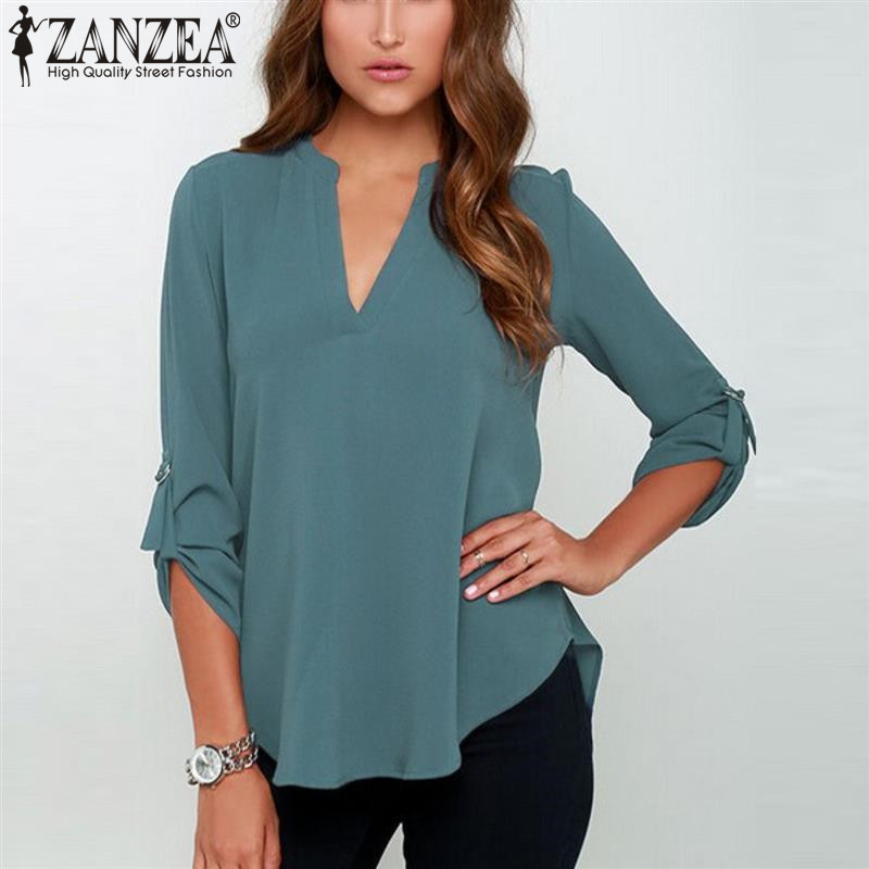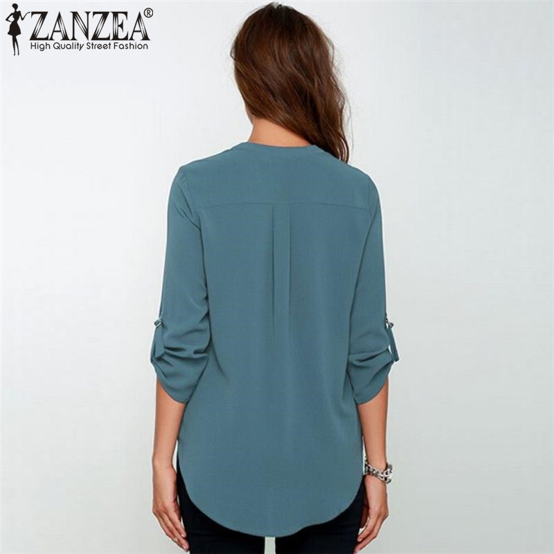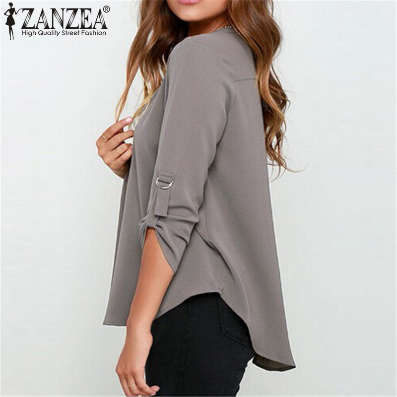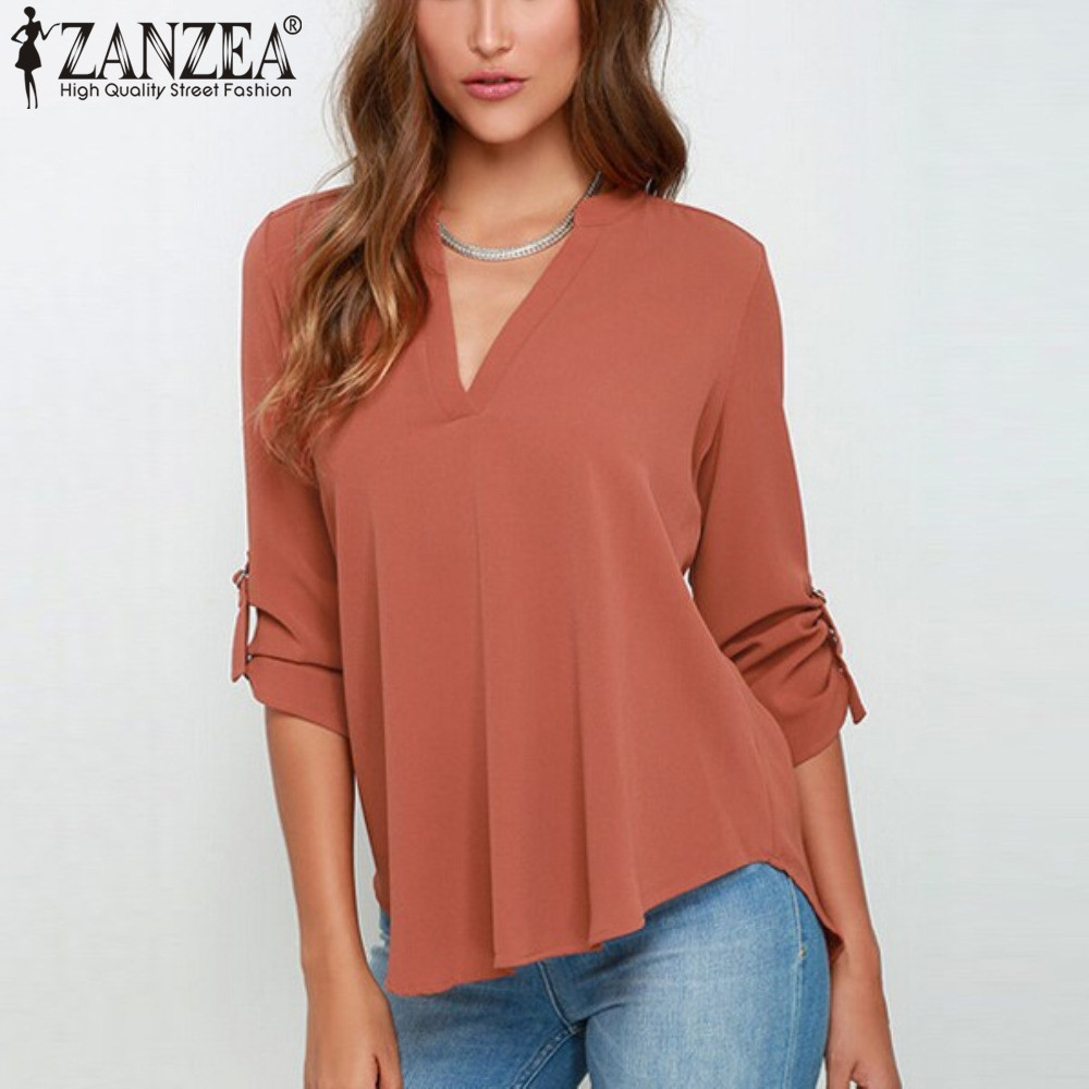 > Damen Bekleidung > Shirts > Femininas neue Damen Hals solide Chiffon Bluse sexy Lady lange Ärmel blUSA Mode Blusen Hemd 5 Farben