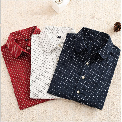 > Damen Bekleidung > Shirts > neue Marke lange Ärmel Damen Polka Dot Femininas Baumwolle Blumenmustern Damen Blusen casual camisetas