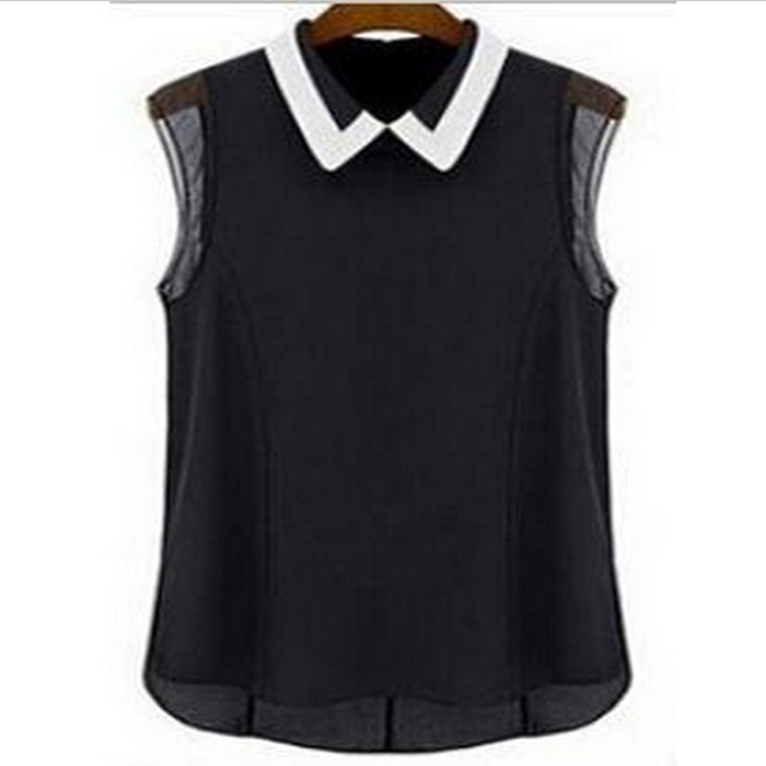 > Damen Bekleidung > Shirts > Damen kurze Ärmel Chiffon Bluse Mode casual Ärmellose Patchwork tüll Bluse Feminina Manga curta