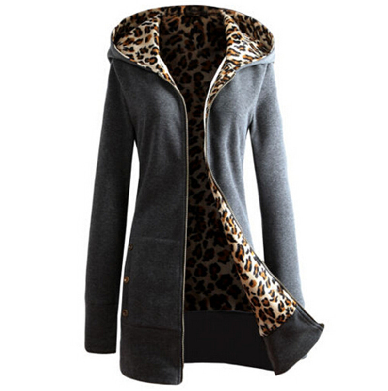 > Damen Bekleidung > Hoodies > Mode Damen im Winter warm lange Ärmel Hoodies SweaT Shirt Jacke lässig Hoody Oberbekleidung Leoparden Mantel