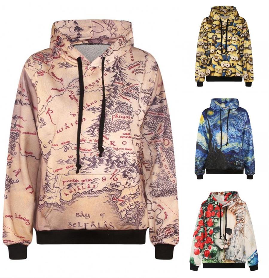 > Damen Bekleidung > Hoodies > Mode lässige Männer Damen der Herr des Rings weltkarte gedruckten KapuzenPulli Damen Pullover Tops Sport Anzug Kapuz
