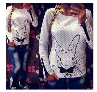 > Damen Bekleidung > Hoodies > Damen Hoody Frühjahr Herbst lange Ärmel Locker Sweat Shirts Damen Sport Anzug Kaninchen gedruckten Kapuzenpullis