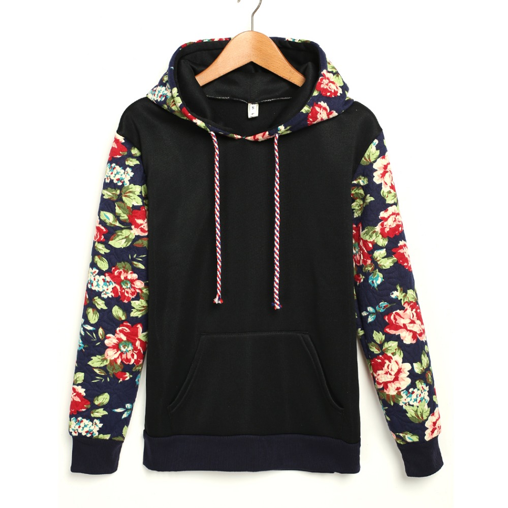 > Damen Bekleidung > Hoodies > Herbst Winter Damen Dicke warme Floral bedruckt lässig KapuzenPullis SweaT Shirts lange Ärmel Vermummte lange Mantel