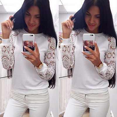 > Damen Bekleidung > Hoodies > neue Damen lange Ärmel Spitzen Hoodies süß lässig sweaterShirt Pullover Strickwaren White