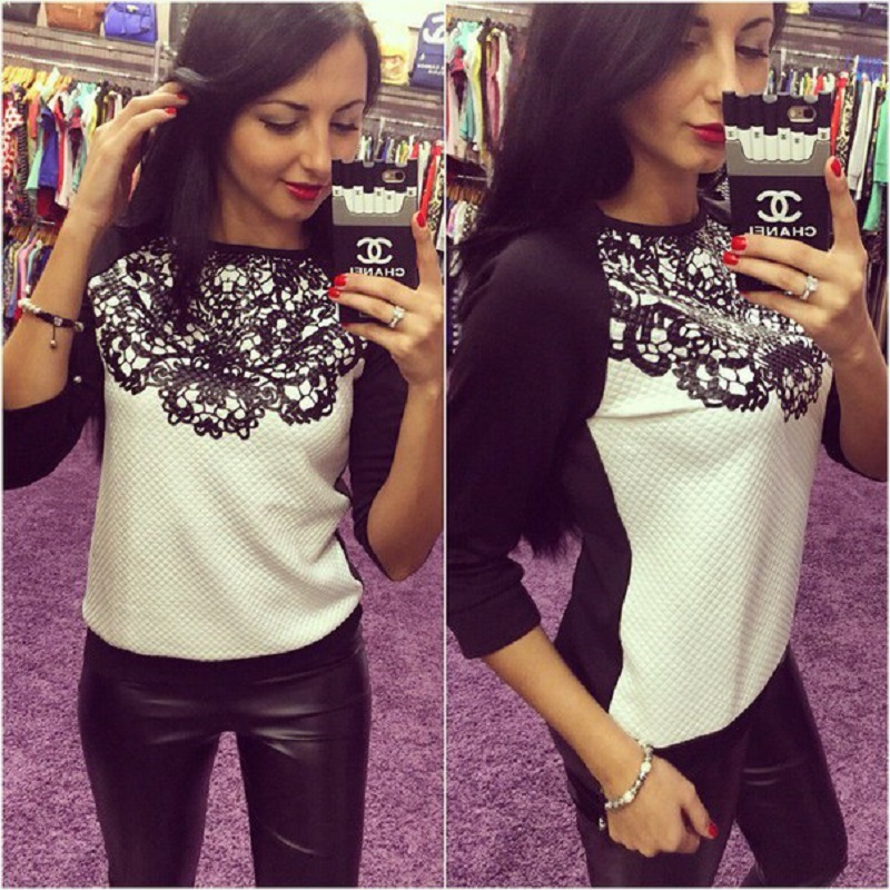> Damen Bekleidung > Hoodies > die neue Herbst Winter Damen Verlieren in Europa Amerika lange Ärmel Spitzen gemeinsame blockiert Farbe Hemden