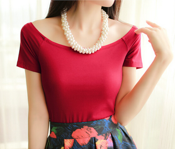 > Damen Bekleidung > Tops > neue Sommer Mode sexy vor der Schulter Tops für Damen so kurze Ärmel Baumwoll T Shirts Grau Blau Schwarz