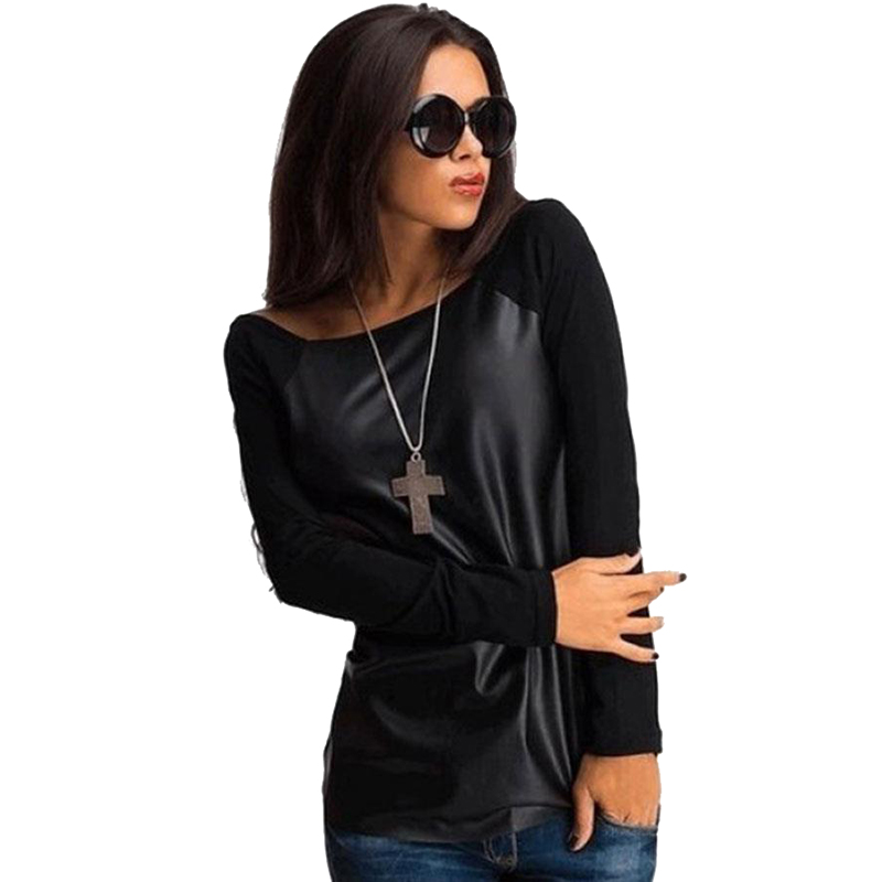 > Damen Bekleidung > Tops > pu Leder T Shirt Damen lange Ärmel sexy o Hals Pullover Tees Mode Schwarz Blau Weisse m xl
