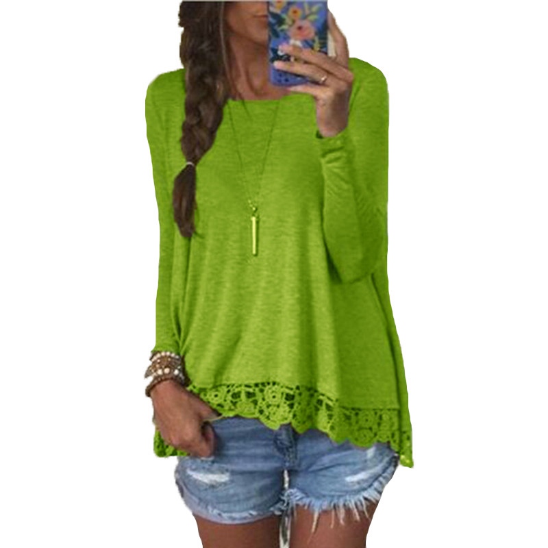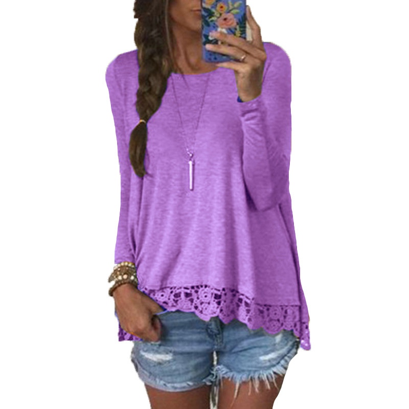 > Damen Bekleidung > Tops > im Frühjahr Damen lässig Locker elegant T Shirt Longarm Shirt Spitzen Saum weibliche Tops und Häkeln