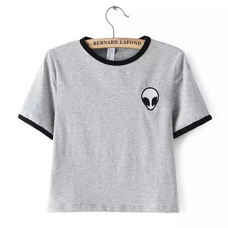 > Damen Bekleidung > Tops > kurze Ärmel alien Pflanzen Womensprint T Shirt Schwarz Weisse T Shirts beim Top alien Shirt Sommer kurz