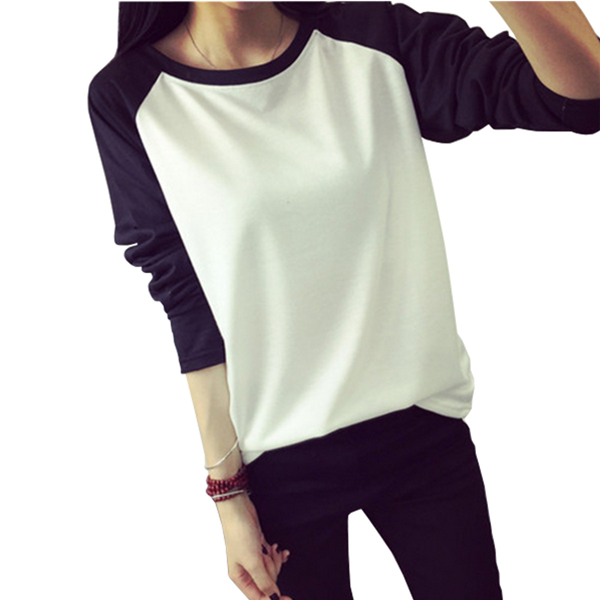 > Damen Bekleidung > Tops > Damen fallen Koreanischen Stil T Shirt Sweat Shirt raglan lange Ärmel Patchwork Lose moleton Tee Tops Femininos