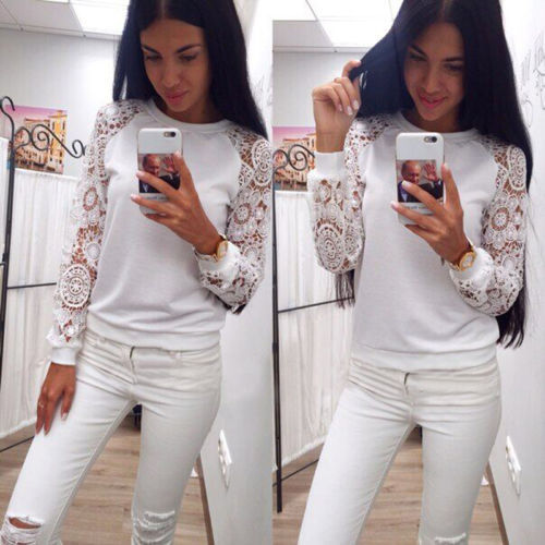 > Damen Bekleidung > Tops > Mode für Damen Longarm Shirt lässig Spitzen T Shirt Locker Baumwoll T Shirt