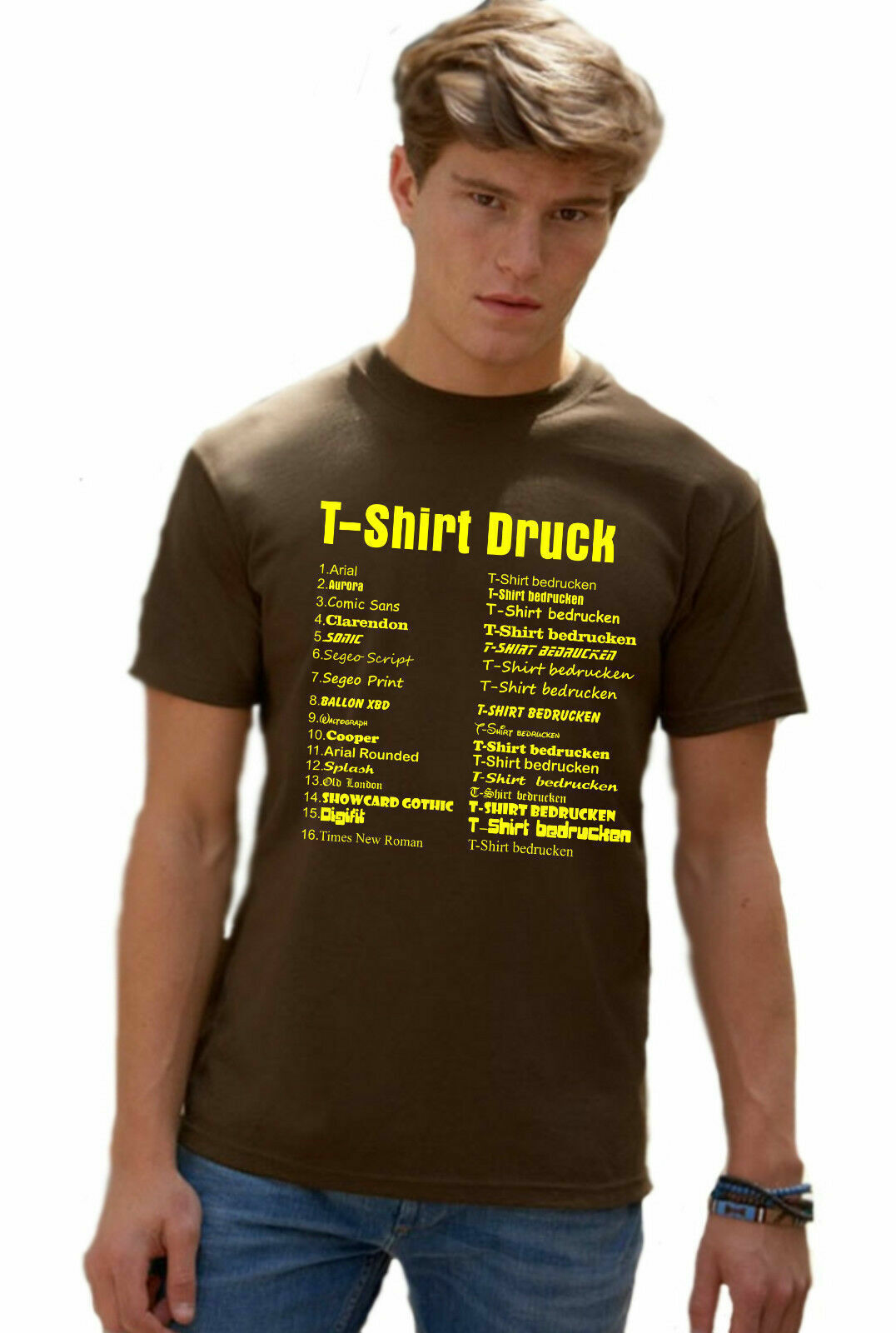 Die Bestellung bei uns ist einfach und unkompliziert: Wählen Sie Ihre gewünschte Größe und Farbe des Shirts aus und geben Sie den gewünschten Text sowie Schriftart und Druckfarbe an. Wir bieten auch die Möglichkeit, Ihr Logo oder Ihren Schriftzug nach Ihren Wünschen zu platzieren. Senden Sie uns einfach Ihr gewünschtes Design vor dem Kauf in den Formaten EPS, PDF oder als Vektorgrafik.