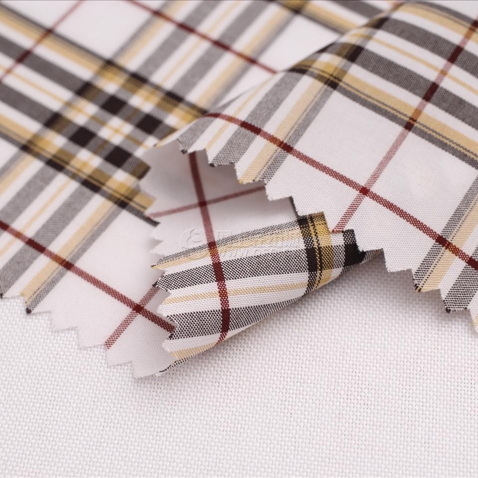 pattern solid color Main process dyeing color White, green, blue, red, 2# red, 4# blue Product name Checked shirt in bamboo woven fabric Weight 115g/m g/㎡ Weaving style woven density 130×90 Door width 57"/58"CM Yarn count 50S×50S Other specifications Bamboo fiber 50% polyester 50% Element Bamboo fiber 50% polyester 50% fabric weave plain weave special handling No ironing, moisture-absorbent and breathable Article number S96147 ![]()