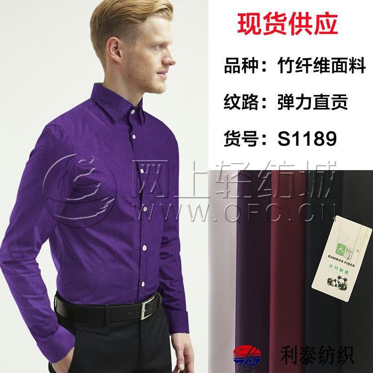 pattern solid color Main process dyeing,dyed weaving use Shirt fabrics, work clothes/uniform fabrics, other clothing fabrics color White, black, purple, red, navy, please note the color number when placing an order Product name Bamboo fiber stretch shirt fabric Weight 160g/㎡ Weaving style woven density 180*110 Door width 150 cm Yarn count 50S*50S+40D Other specifications 180*110 Element Bamboo fiber 48.5% polyester fiber 48.5% spandex 3% fabric weave other organizations special handling No ironing, moisture-absorbent and breathable Blending ratio Bamboo fiber 48.5% polyester fiber 48.5% spandex 3% Article number S1189 ![]()