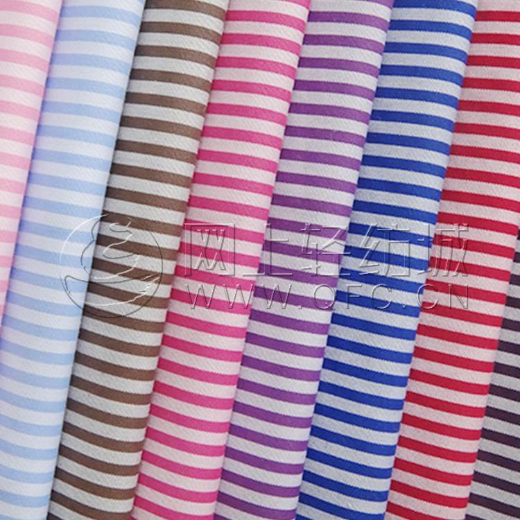 pattern stripe Main process Yarn-dyed use Shirt fabrics, work clothes/uniform fabrics color 8# blue and white strips, 11# dark blue and white strips, 7# purple and white strips, 5# brown and white strips, 6# rose red and white strips, 12# black and white strips, 1# gray and white strips, 3# pink and white strips, 10# dark purple and white strips, 4# light blue and white stripes Product name Yarn-dyed plaid Weight 110g/㎡ Weaving style woven density 144X80 Door width 150 cm Yarn count 45sX45s Other specifications 45sX45s/144X80 Element Combed cotton 35% microfiber 65% special handling No ironing, moisture-absorbent and breathable fabric weave other organizations Blending ratio Combed cotton 35% microfiber 65% Article number LT-T1058 ![]()