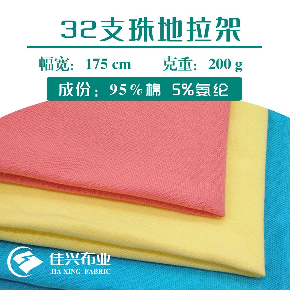Pique mesh fabric T-shirt polo shirt clothing fabric cotton elastic pique pattern: solid color, main process: dyeing, use: underwear, T-shirts/POLO shirts, children's clothing, product name: bead frame, weight: 200 ,Composition: 95% cotton 5% spandex