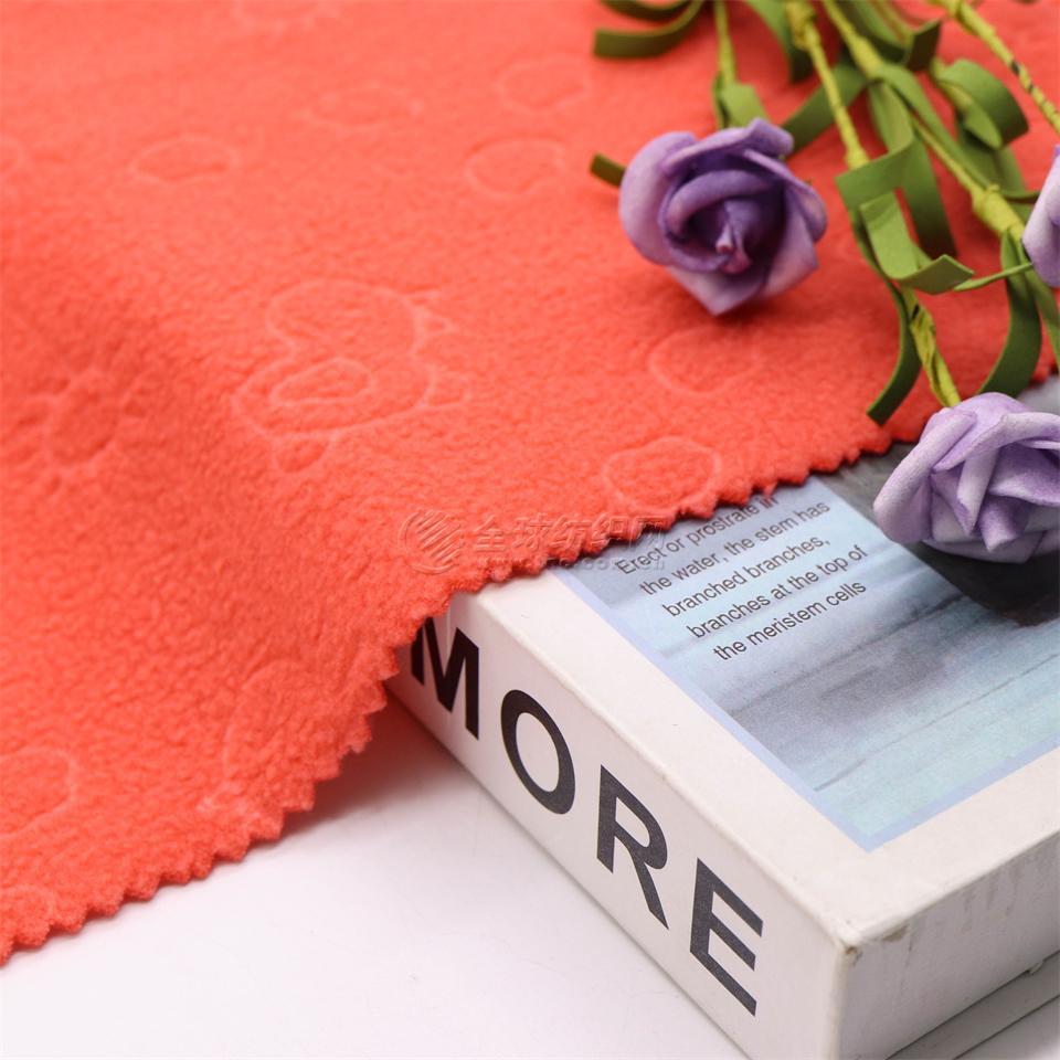 Manufacturer wholesale customized embossed polar fleece knitted clothing accessories toys are pattern: jacquard, main process: dyeing, use: sweatshirt fabric, other clothing fabrics, product name: embossed polar fleece, weight: 220 g/㎡, ingredients: all Polyester, weaving method: knitting