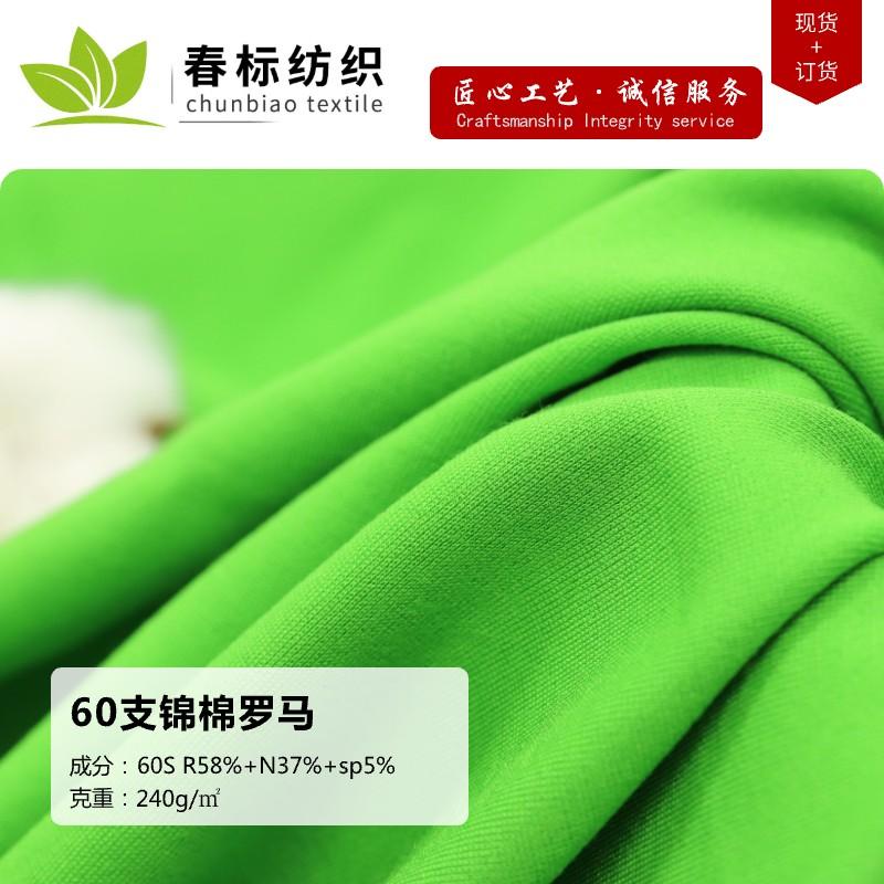 Source manufacturer 60-count nylon-cotton stretch knitted Roman cloth T-shirt fashion casual wear leggings fabric is pattern: solid color, main process: dyeing, other, use: pants, outdoor wear/sportswear, T-shirt/POLO shirt, product name: 60S nylon cotton Roman, weight: 240 g/㎡
