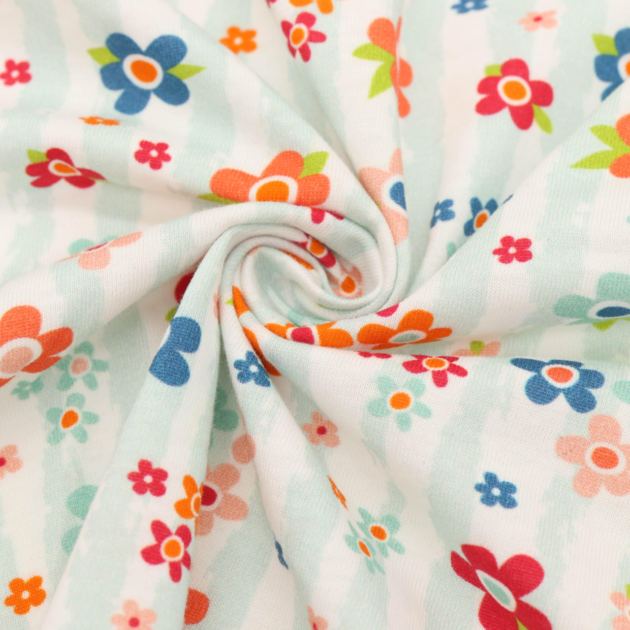 > Fabric > for T shirt > Knitted cotton non-elastic jersey small floral print fabric, breathable and soft clothing