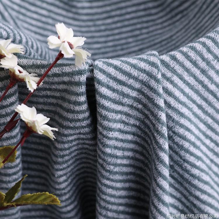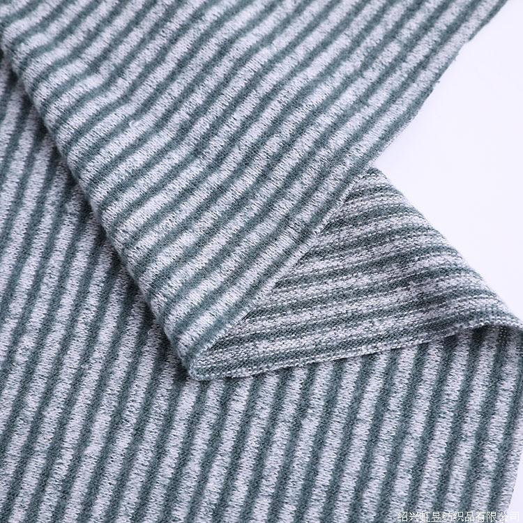Brushed yarn-dyed striped fabric positioning printing abstract single-sided combed coarse-knit fabric sportswear fashion fabric is pattern: stripes, weight (g/㎡): 200 g/㎡, main process: dyeing, yarn-dyed weaving, composition: R25% T72 % SP3%, product name: brushed yarn-dyed rib, weaving method: knitting, clothing fabric: skirt