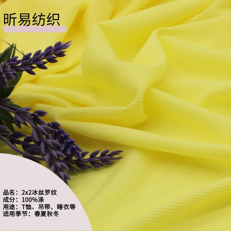 2x2 ice silk polyester rib T-shirt suspenders for women are available in stock. Pattern: solid color, main process: dyeing, use: underwear, T-shirt/POLO shirt, sweater/sweater, color: multi-color mixed color, sold in 1 roll, product name: 2x2 rib