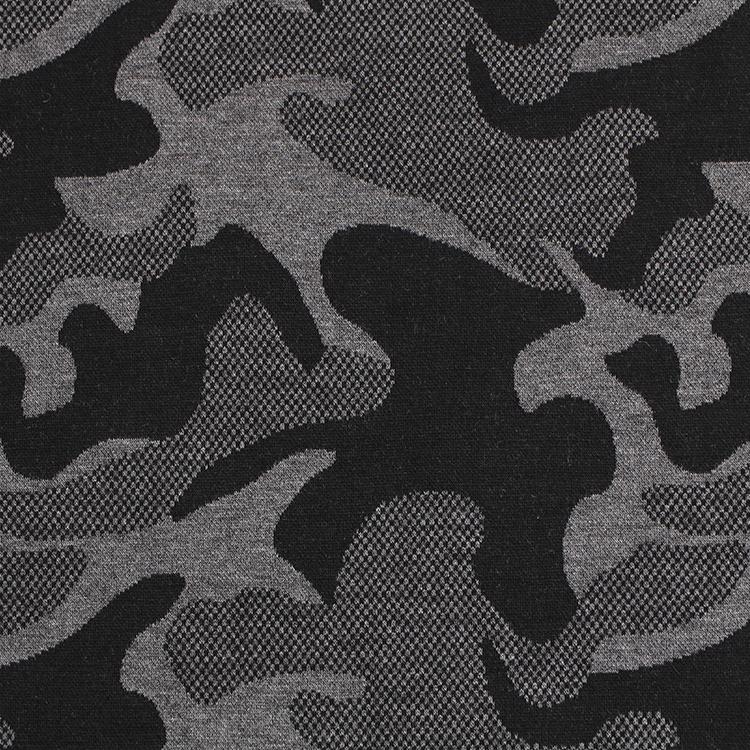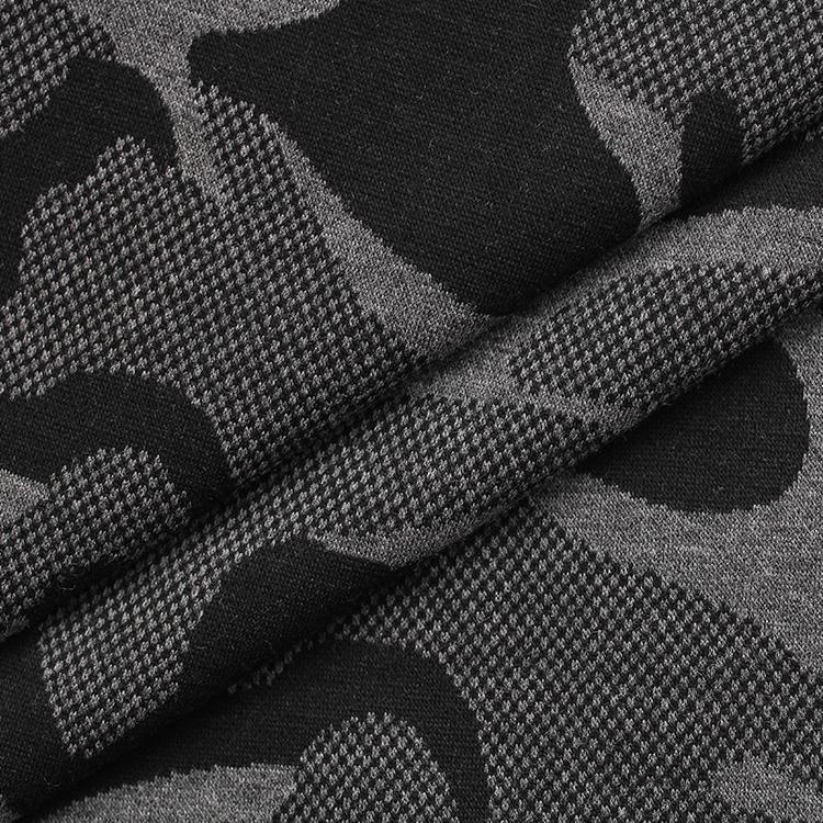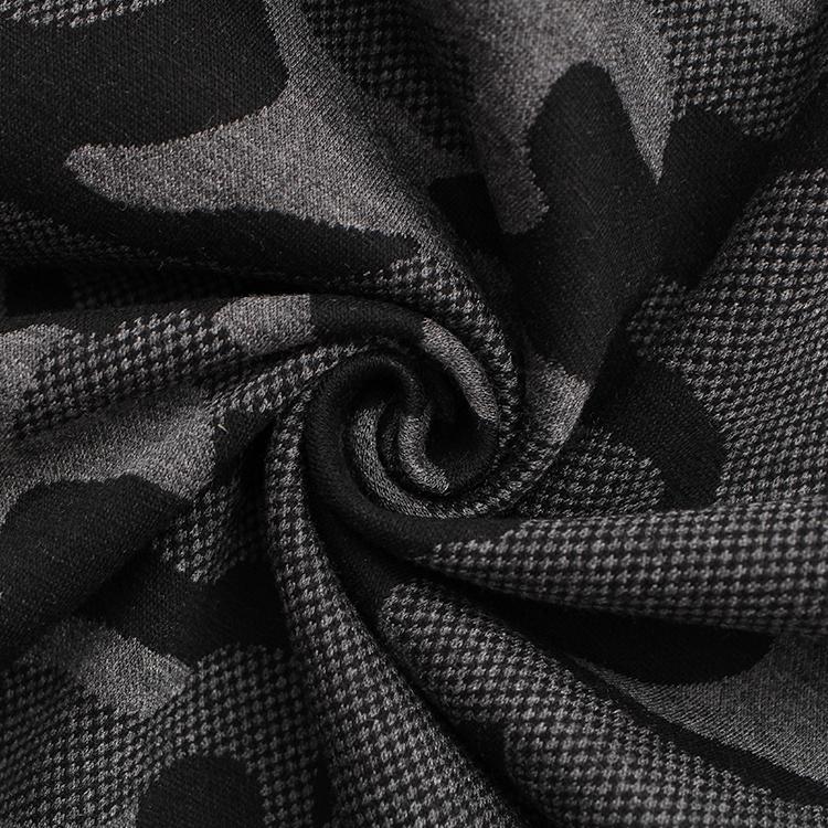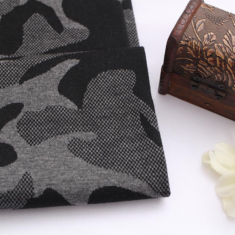 Supply TR camouflage jacquard double-sided fabric 30 count thickened knitted autumn and winter trousers clothing fabric pattern: camouflage pattern, ingredients: 75% polyester 22% rayon 3% spandex, yarn count: 30 count, main process: dyeing, jacquard, gram Weight (g/㎡): 350 g/㎡, color: black, product name: camouflage jacquard double-sided