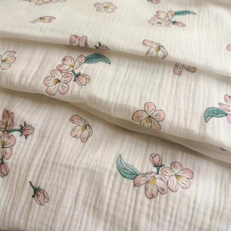 > Fabric > Home textiles > 40 count cotton double-layer crepe pure cotton gauze moisture-wicking wrinkled cloth cartoon children's home clothes