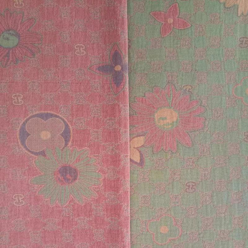 New ready-made double-layer yarn plant flower pillow sofa bed cushion cloth customized pajamas and home clothes. The fabric is pattern: floral pattern, yarn count: 40*40, main process: yarn-dyed weaving, composition and content: 100% cotton, gram weight: 160 g /㎡, other specifications: 2.5 meters wide double-layer yarn jacquard fabric, weaving method: woven, density: 143*85