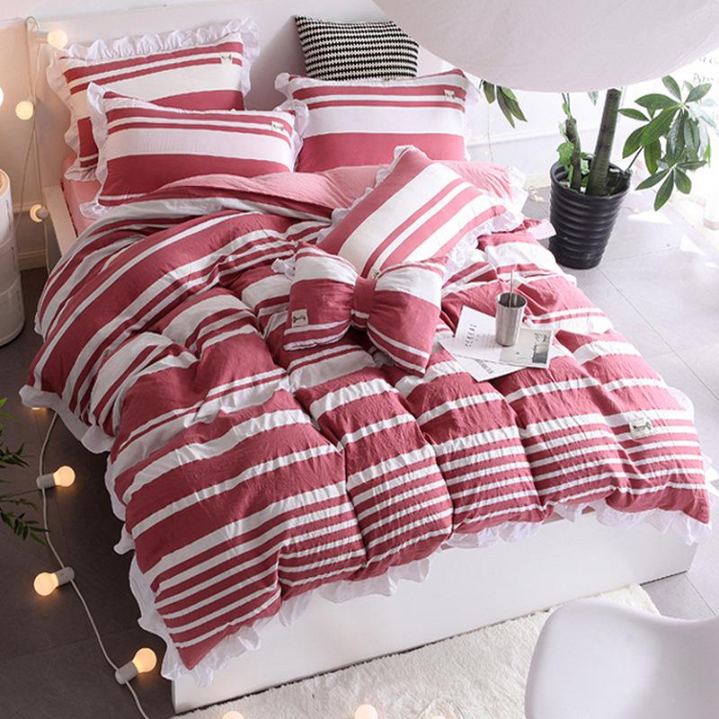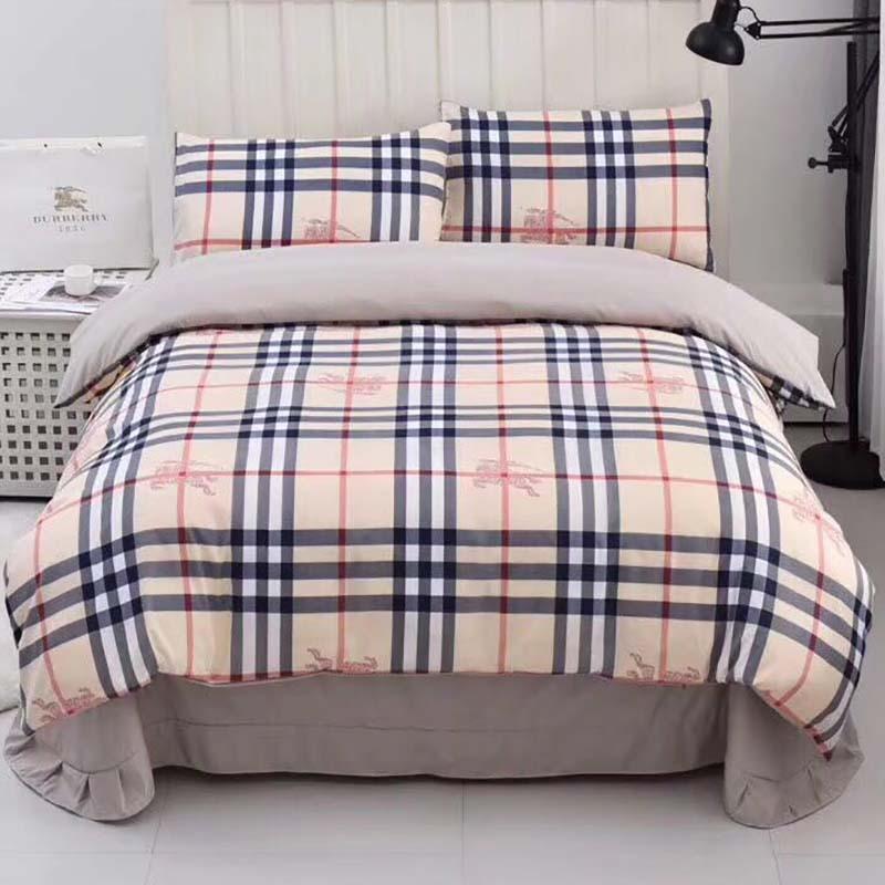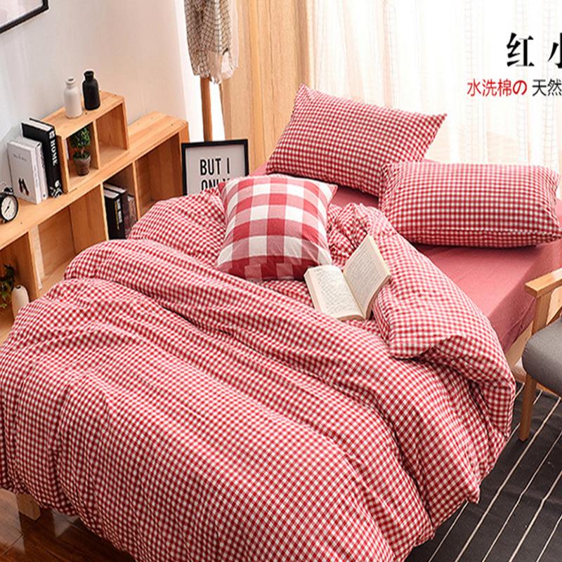 > Fabric > Home textiles > Polyester washed cotton fabric 100% polyester chemical fiber washed cotton four-piece set plaid striped printed fabric 2