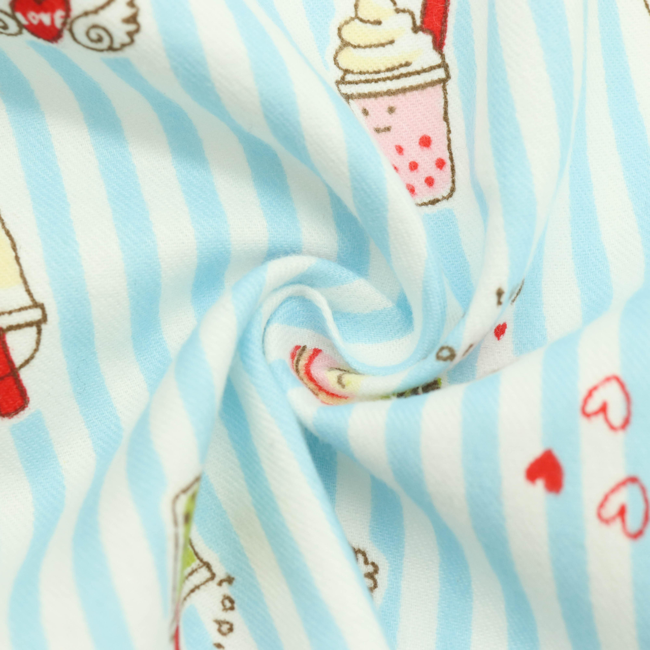2/2 twill 21S factory spot cotton printed serge is warp yarn count: 32S, weft yarn count: 21S, warp yarn composition: C100, weft yarn composition: same warp yarn, warp yarn density: 64, weft yarn density: 66, door width: 67, Selvedge: raw edge
